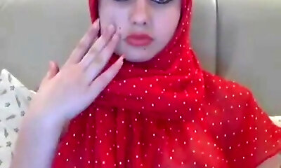 A hot slut in a hijab records a sex flick for her bf where she masturbates