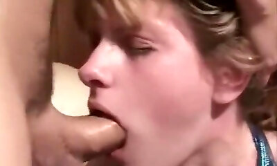 Cum-thirsty tramp throats heavy shaft in hardcore facefuck tryout
