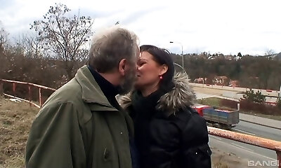 Gorgeous Czech pornstar gets fucked by a horny old chap outdoors