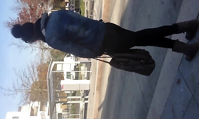 cum on teenage ebony at bus stop