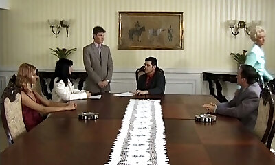 Blonde Bosses Humping Their Employees' Big Cocks In CFNM Foursome
