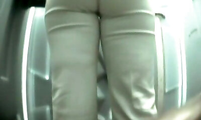 Sweet and succulent round pale flesh booty filmed in the toilet room