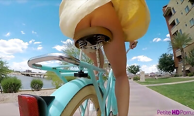 Pantless girl Avi Love is riding her bicycle before a torrid sex with stranger