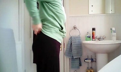 Palatable chunky brunette gonna take a shower and tickle her moist puss
