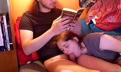 mein freund liebt es, ein buch zu lesen, während ich seinen schwanz in meinem mund halte