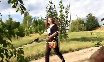 Sweet Russian teen babe by the highway demonstrates her pussy