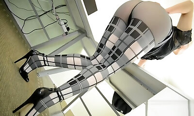 Yulenka wearing nylon stockings luvs while fingering her cunt