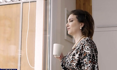 Coffee time turns to a sapphic fuck with insatiable mature Lara