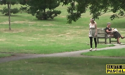 Pulled european amateur being pussyslammed and gets cum on her donk