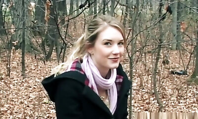 Lovely, blue- eyed blonde schoolgirl is mildly sucking her lover's dick, to make him cum